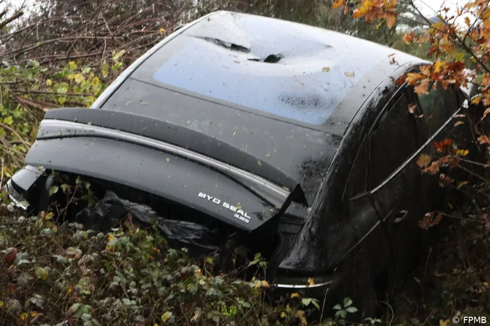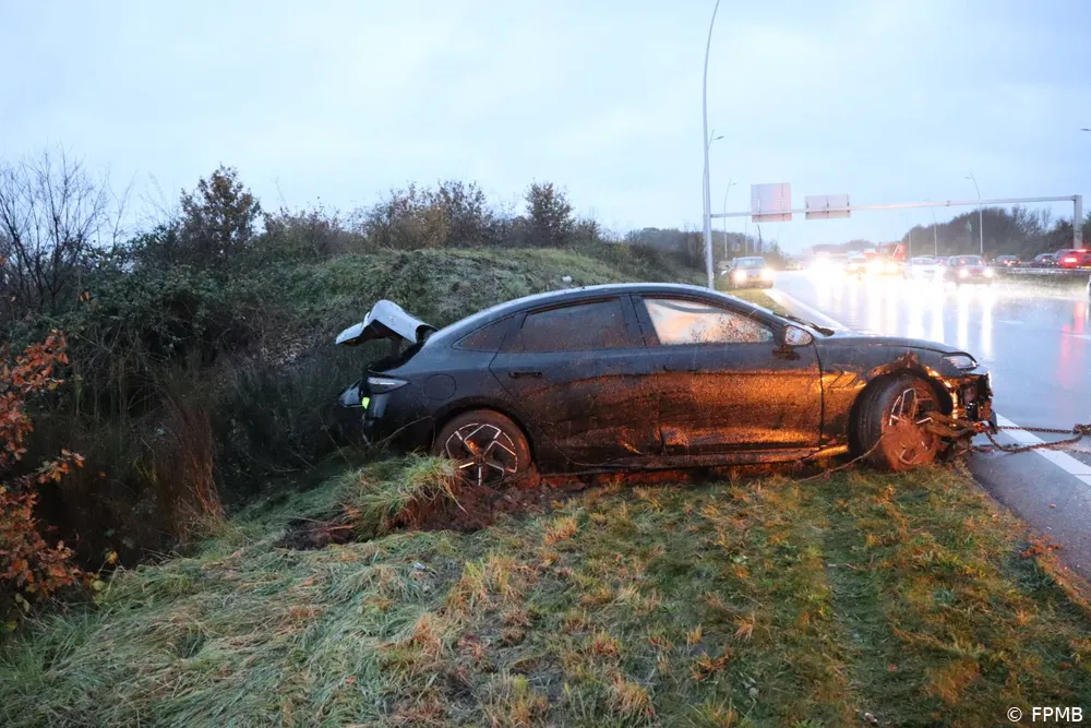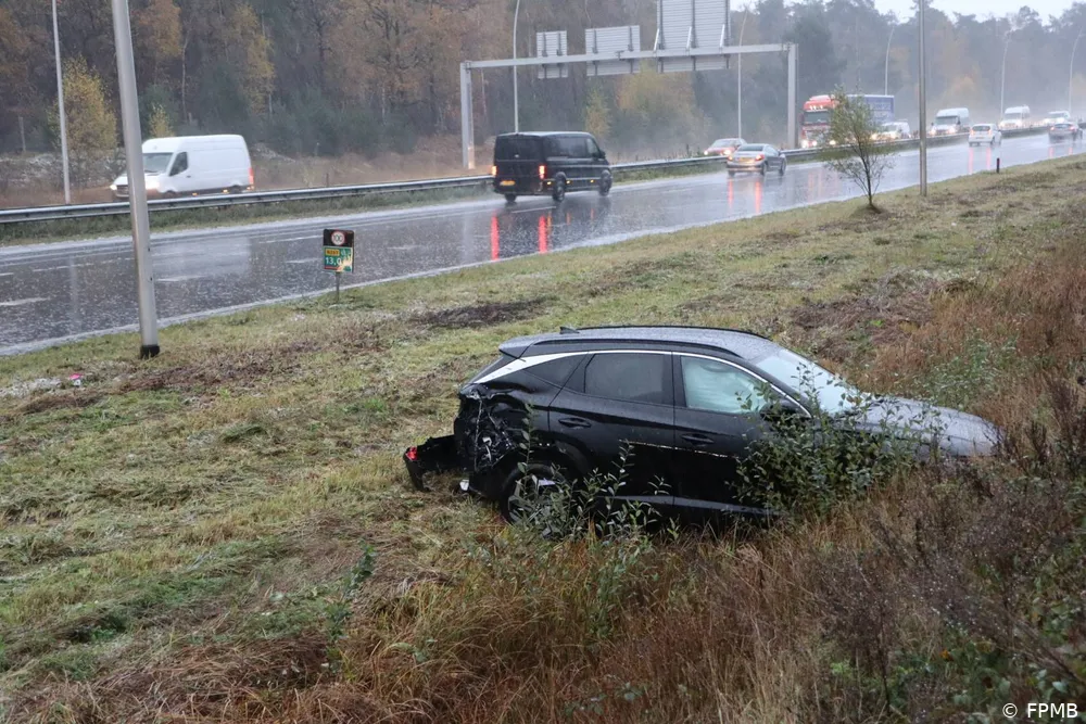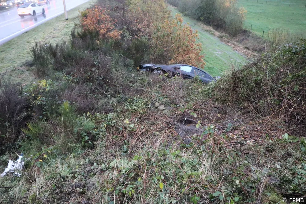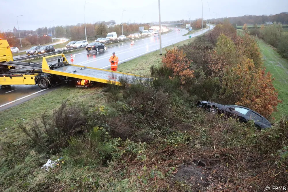 Ongeveer vijftien minuten later ging het mis op de andere rijbaan, richting Loon op Zand. Ter hoogte van het Efteling Hotel slipte een auto door hetzelfde slechte weer. Het voertuig botste tegen een lantaarnpaal en kwam tot stilstand in een naastgelegen sloot. De bestuurder liep licht letsel op en is onderzocht door de ambulancedienst. Ook hij hoefde niet mee naar het ziekenhuis.