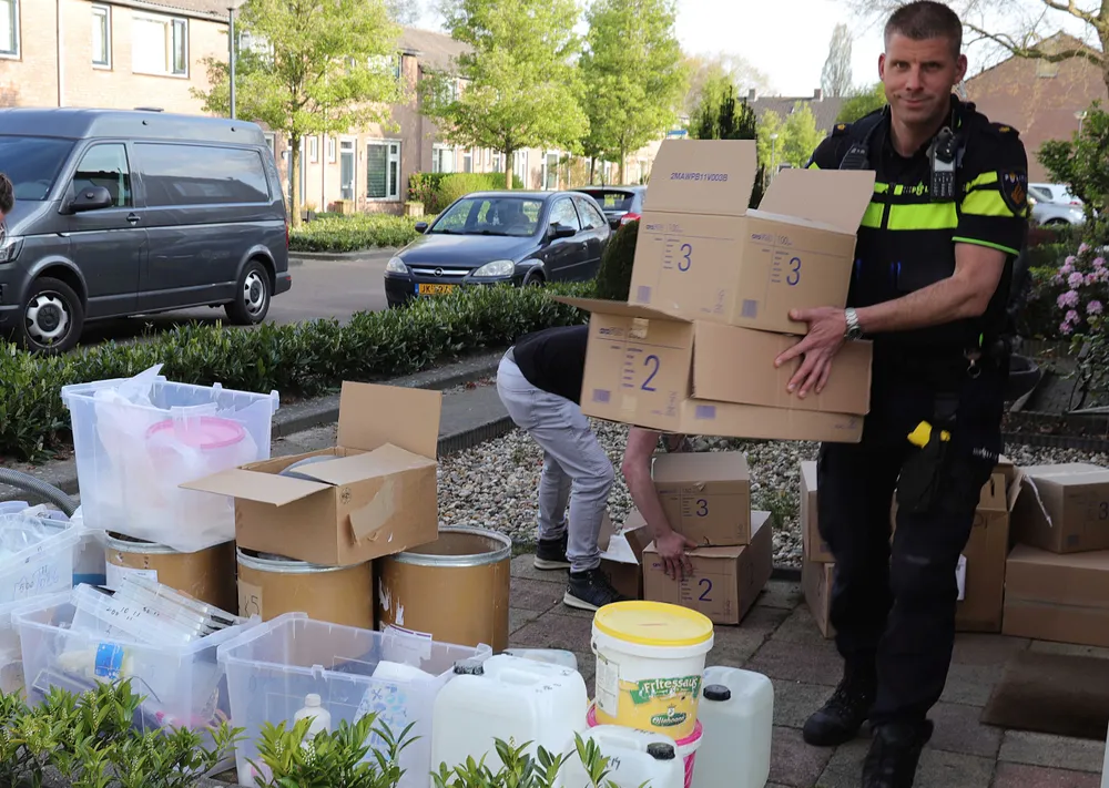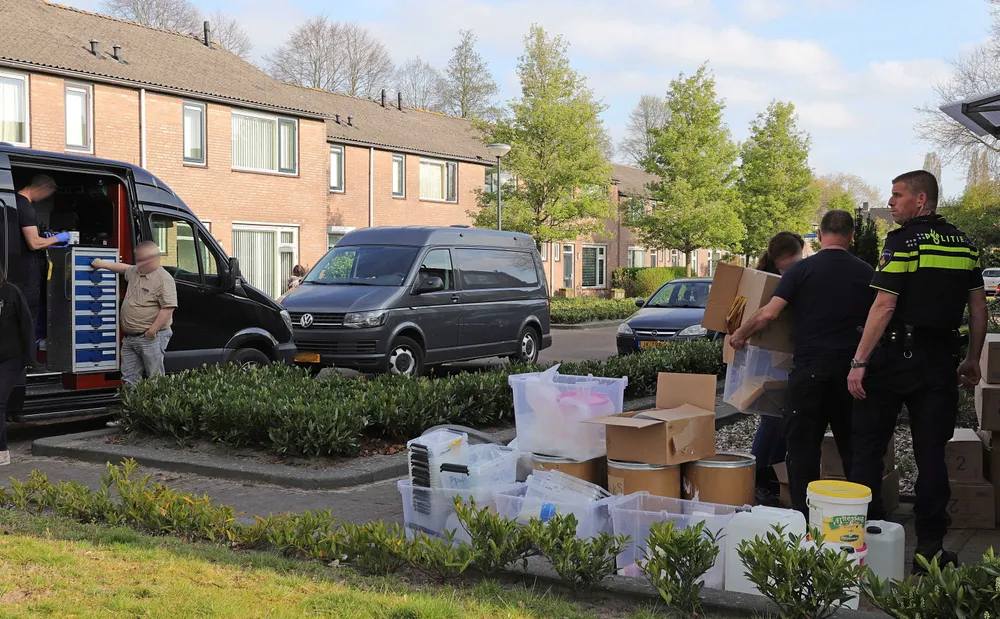 In de woning zijn meerdere spullen aangetroffen voor het maken van harddrugs. De politie en de recherche hebben verder onderzoek gedaan in de woning. Alle spullen die gebruikt werden voor het maken van harddrugs zijn uit de woning gehaald door SEON (Service En Ondersteuning Nederland).