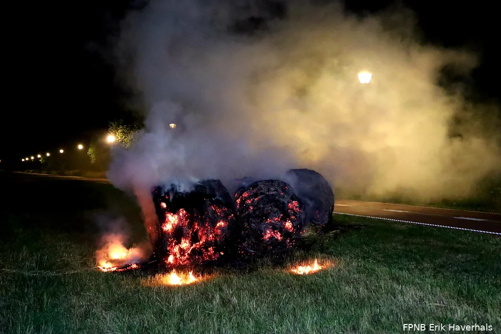 Langs het fietspad van de voetbalvelden stonden een aantal hooirollen in brand. De brandweer kwam met twee wagens ter plaatse om de hooirollen te blussen. De oorzaak is onbekend.