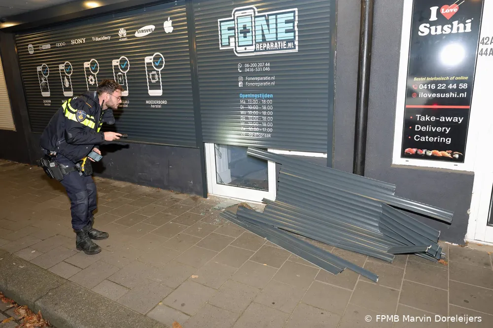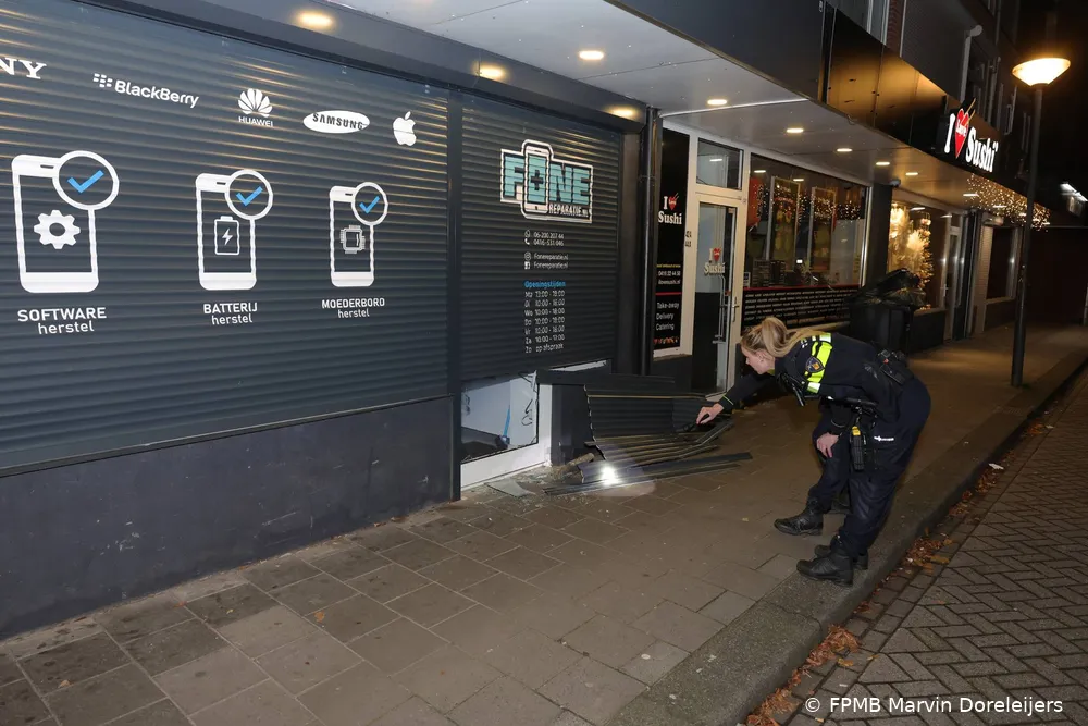 WAALWIJK – Op vrijdag 12 december rond 04.00 uur vond een inbraak plaats bij telefoonwinkel FoneReparatie aan het Bloemenoordplein. Buurtbewoners werden wakker van een harde knal en zagen een man het pand binnendringen.