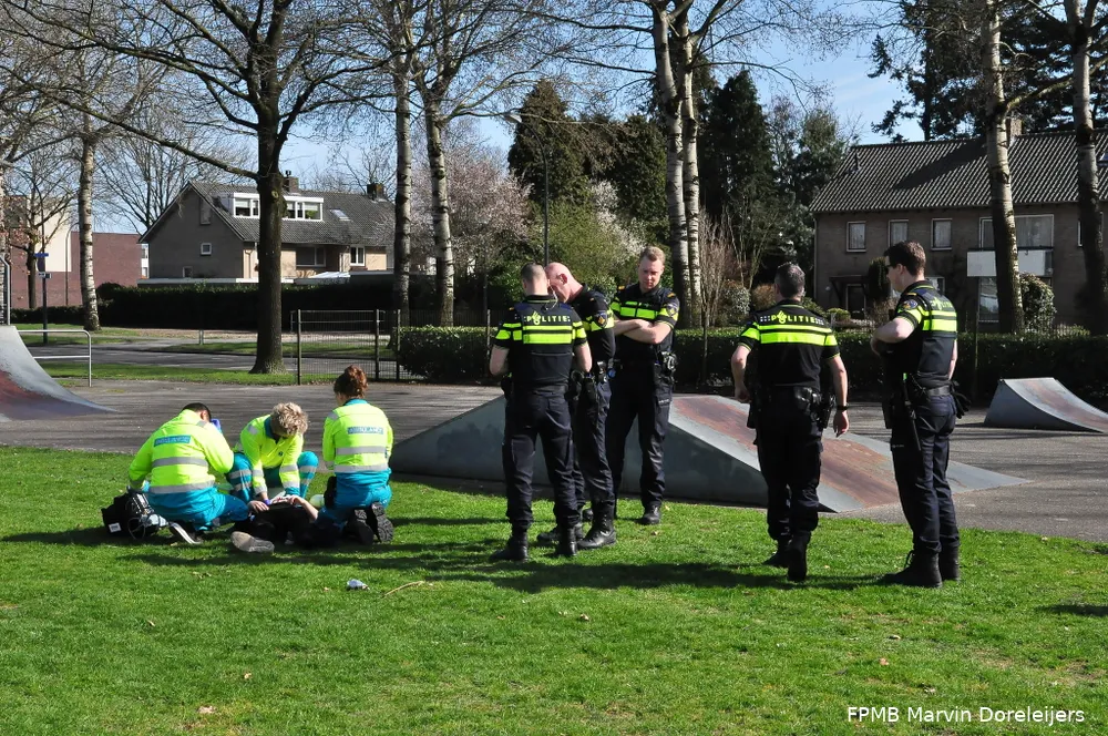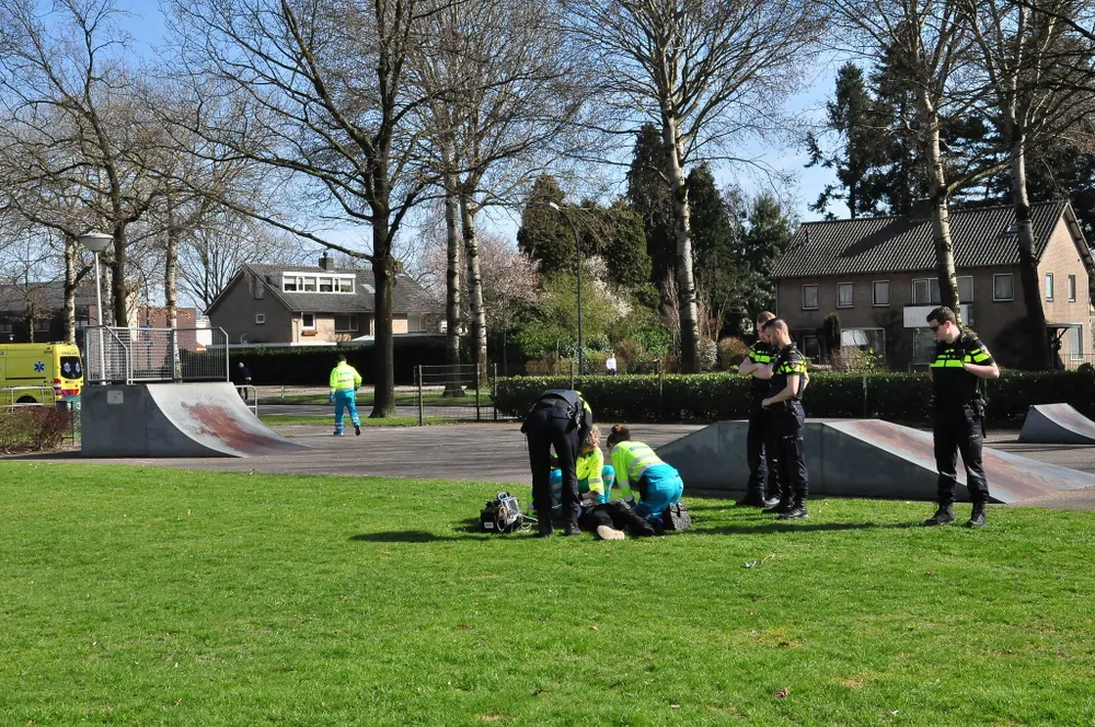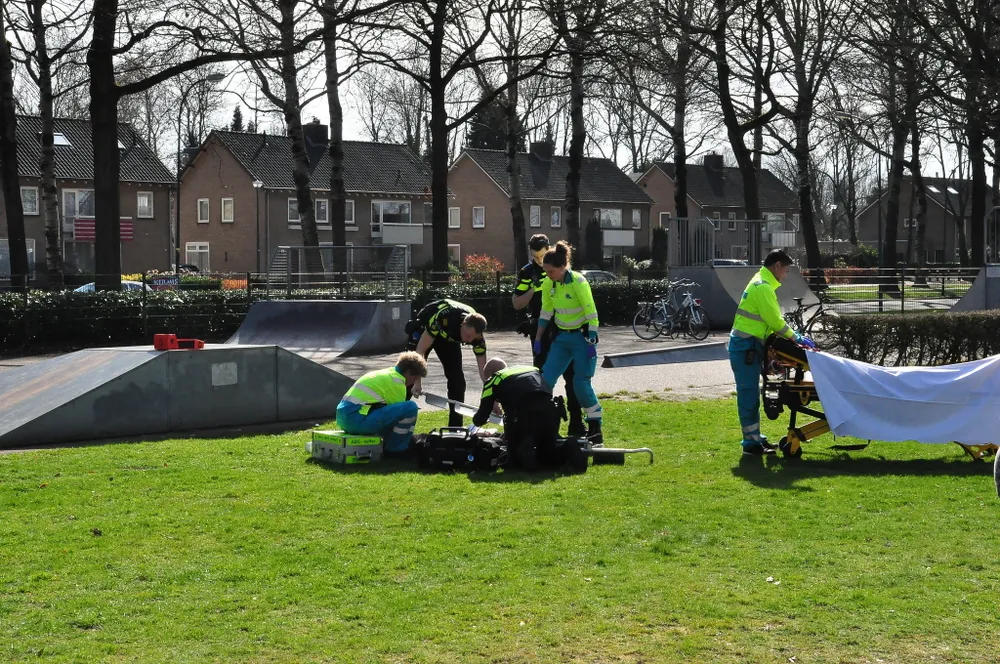 In de Steve Bikostraat te Waalwijk is vrijdagmiddag een jongetje gewond geraakt door een val op de skatebaan.