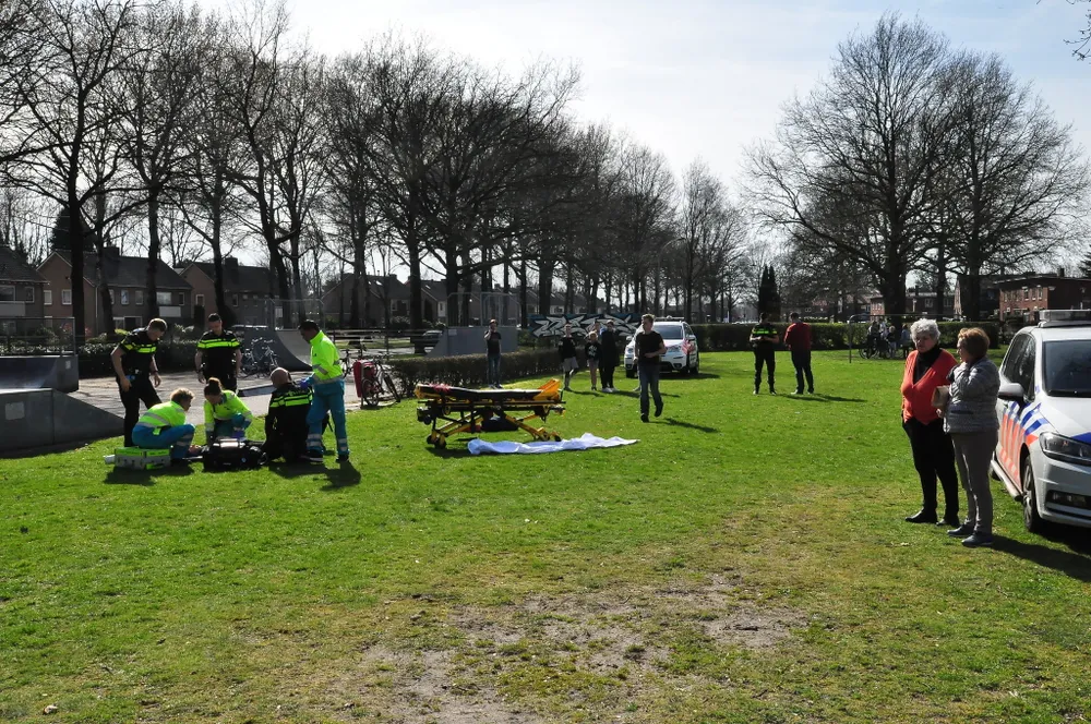 Het jongetje was daar aan het fietsen en bij een sprong kwam hij lelijk ten val op zijn nek en rug. Het jongetje is overgebracht naar een ziekenhuis. De ernst van de verwondingen is nog niet bekend. De opgeroepen traumahelikopter werd later afgemeld.