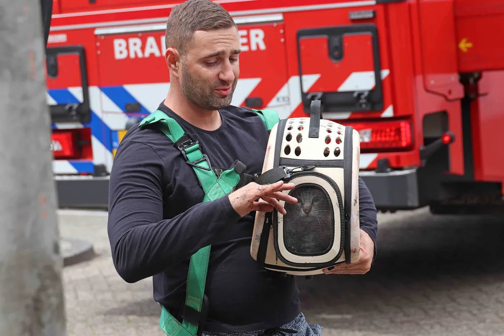 Uiteindelijk besloot de brandweer om de eigenaar van de kat met een kattenmandje mee naar boven te nemen in de hoogwerker. Gezamenlijks wisten alsnog de kat van het dak te halen. De brandweer kreeg een applaus van omstanders die kwamen kijken naar de reddingsactie. De eigenaren van de kat waren de brandweer erg dankbaar.