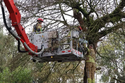 De man was bezig met snoeiwerkzaamheden toen hij bekneld raakte. Twee brandweerwagens, waaronder een hoogwerker, kwamen ter plaatse om de man te bevrijden. Dankzij de hoogwerker werd hij veilig uit de boom gehaald en weer op de grond gezet. De man was zichtbaar opgelucht na zijn redding.