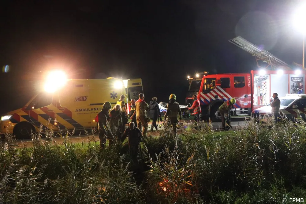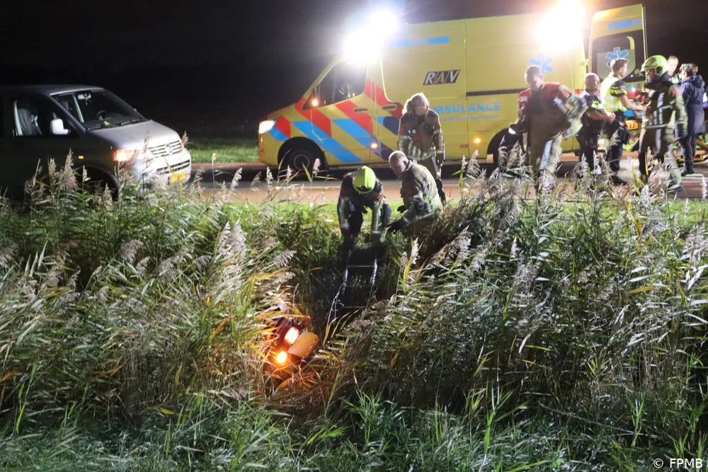 De brandweer hielp de ambulancemedewerkers om de man uit de sloot te halen, die daar zo’n 1,80 meter diep is. De gewonde motorrijder is op een brancard gelegd en naar het ziekenhuis gebracht.