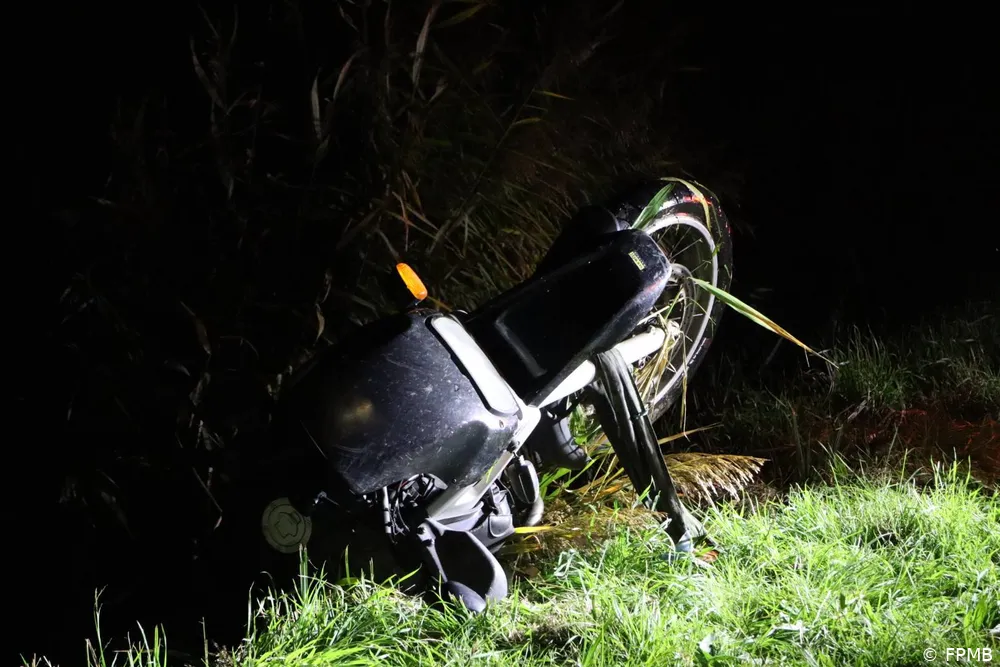 Een takelbedrijf heeft later de motor uit de sloot gehaald. De politie heeft het ongeval in onderzoek en de aanrijding geregistreerd.