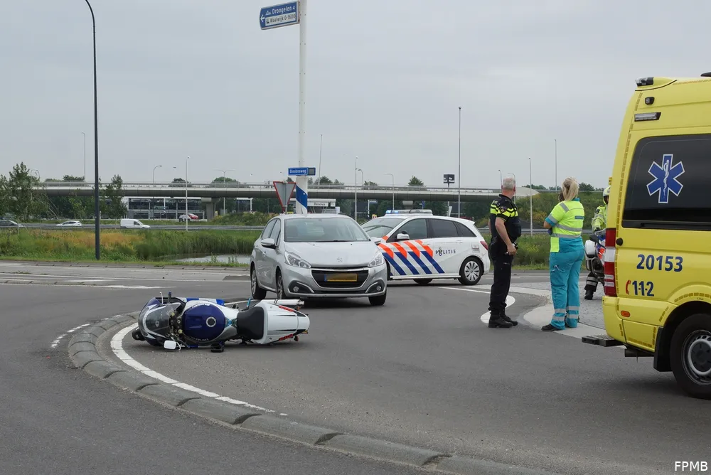 Midden op de turborotonde, waar twee banen naast elkaar liggen, botsten de motor en auto op elkaar. Vermoedelijk hebben ze elkaar over het hoofd gezien. De motorrijder raakte gewond aan zijn been en is naar het ziekenhuis gebracht.
