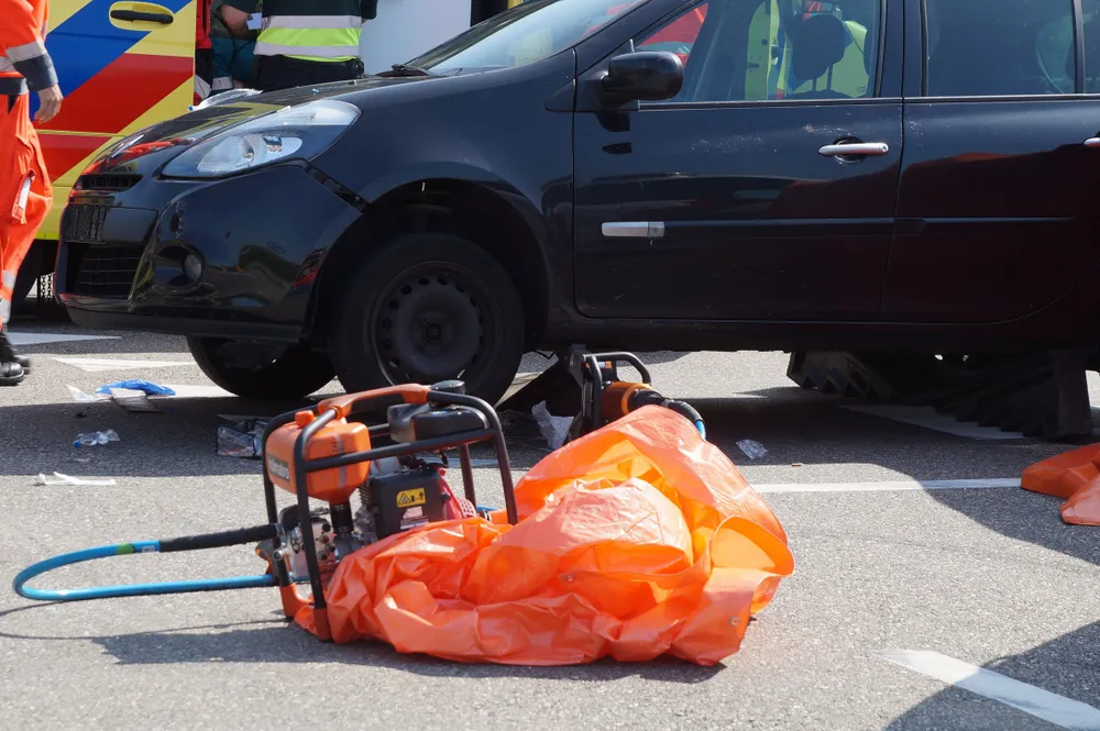 De brandweer heeft hem uit zijn beknelde positie bevrijd door de auto op te tillen. Het slachtoffer is na een behandeling op de plaats van het ongeval met spoed naar het ziekenhuis gebracht.