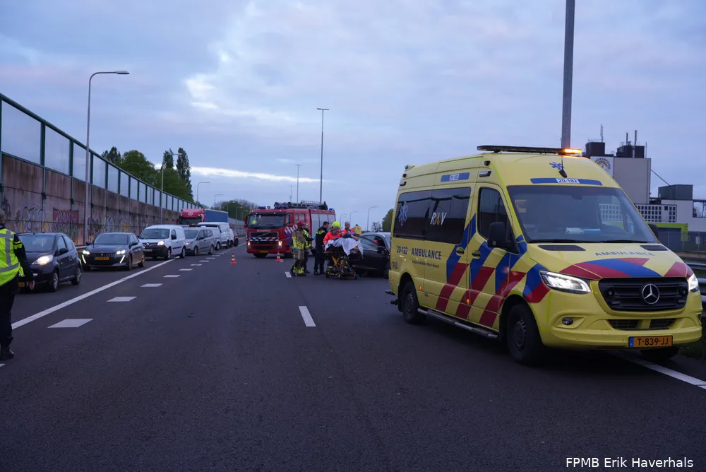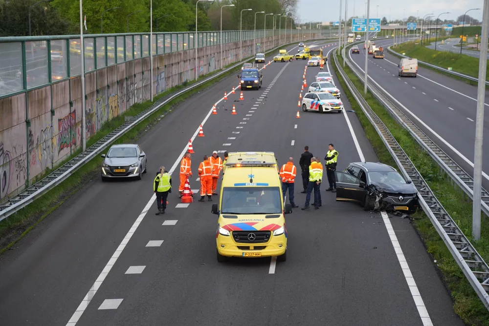 Twee auto's zijn met elkaar in botsing gekomen, waarbij een inzittende van de achterste auto ernstig gewond raakte en met spoed naar het ziekenhuis is vervoerd. De politie begeleidde de ambulance met spoed naar het ziekenhuis. De bestuurder van deze auto is door de politie meegenomen naar het bureau voor verder onderzoek. De inzittende van de auto waarop ze zijn gereden, een man en een vrouw, zijn nagekeken door medisch personeel. De vrouw raakte licht gewond.