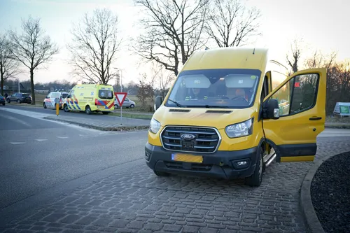 Zowel de motor als het busje liepen lichte schade op. De politie was ter plaatse en heeft de aanrijding vastgelegd. De oorzaak van het ongeval wordt onderzocht.