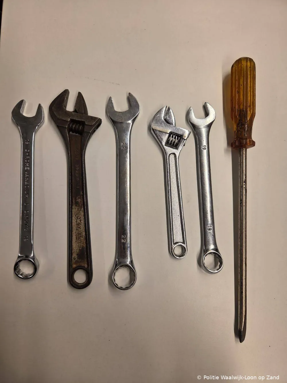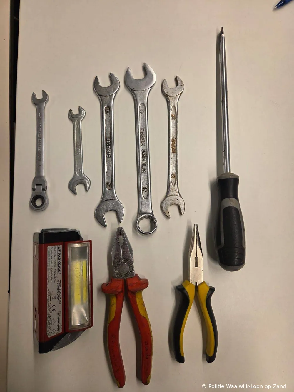 Tijdens de controle bleek dat twee van de drie mannen zich niet konden legitimeren. Agenten besloten daarop tot een fouillering. Bij deze controle trof de politie onder meer tangen, schroevendraaiers, steeksleutels en een zaklamp aan. De mannen konden geen plausibele verklaring geven voor het bezit van dit gereedschap.