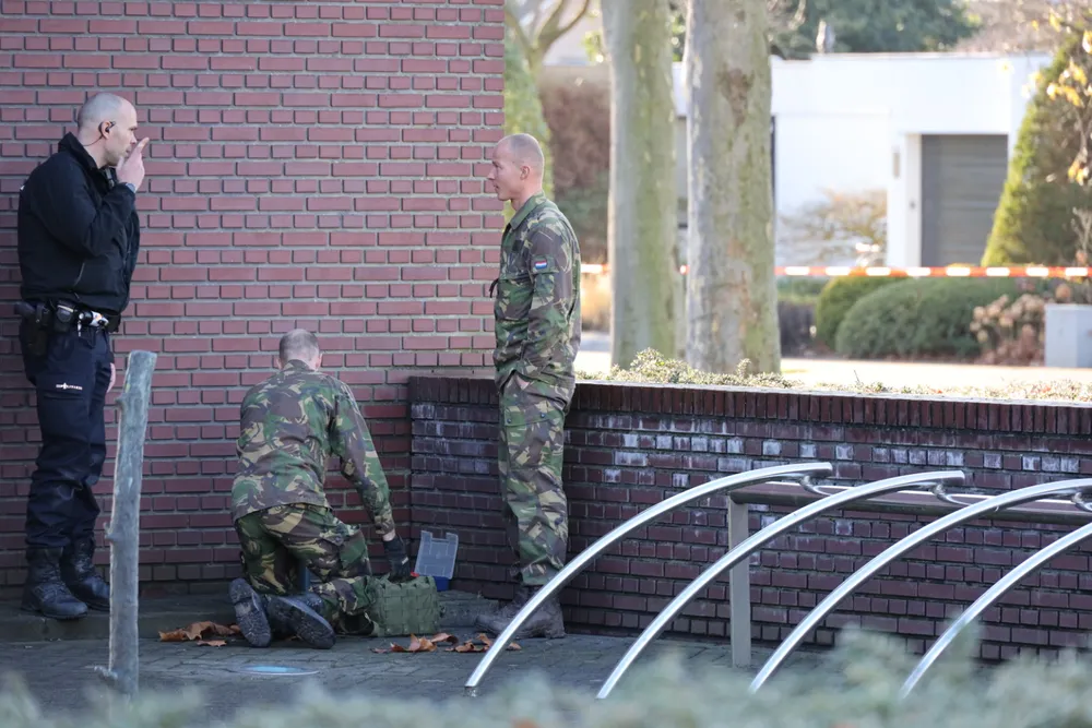 Het explosief is ontmanteld. Medewerkers van de EOD hebben het meegenomen. Het was een gedemonteerd stuk munitie, dat bij het bureau werd binnengebracht. Het gaat op de staart en de kopontsteker van een mortiergranaat. Het staartstuk kan weinig kwaad, weer agent Michael van Creij die buiten het politiebureau stond te wachten. De kopontsteker is wél gevaarlijk.