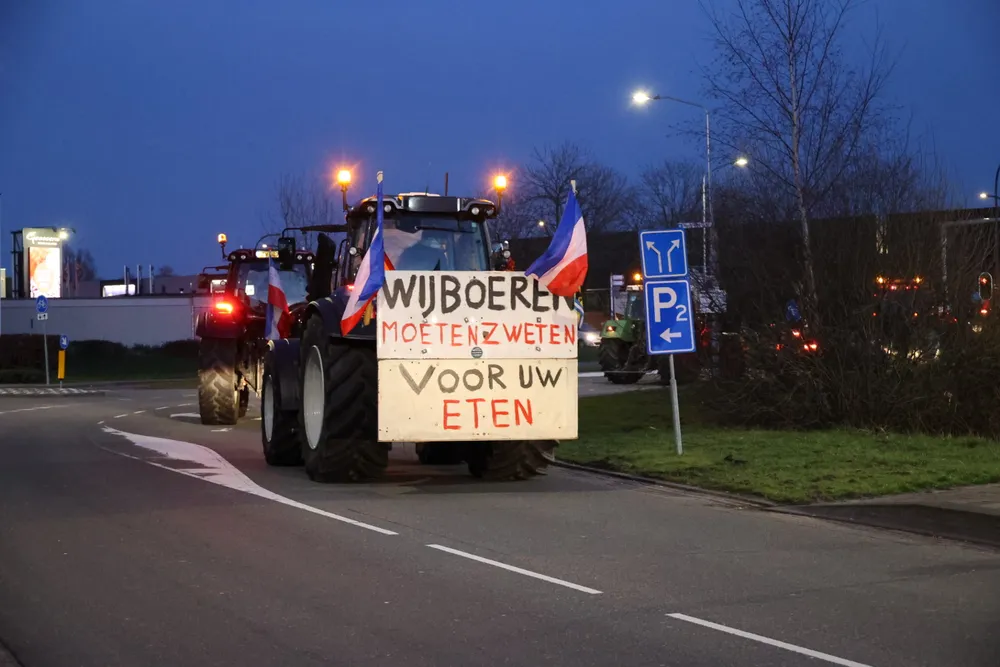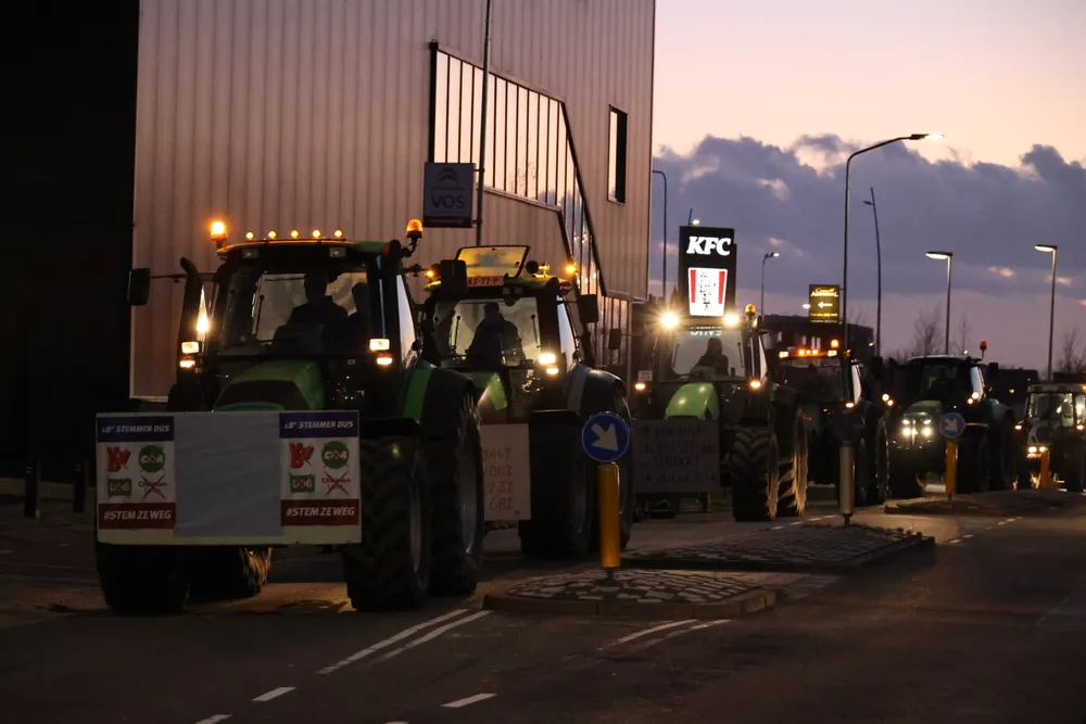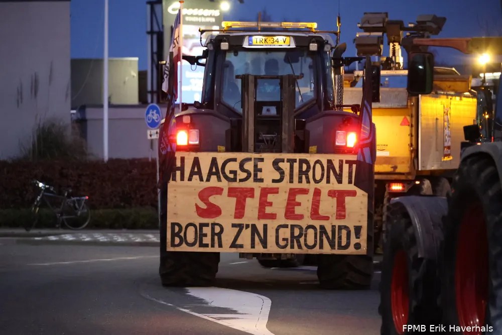 WASPIK / DEN BOSCH - Ruim 100 boeren met tractoren rijden vanuit Waspik toeterend door Waalwijk en Drunen heen. Ze zijn op weg naar het Provinciehuis in Den Bosch om te protesteren. De tractoren rijden rond met borden waarop leuzen staan als ‘Haagse stront steelt boer zijn grond’.