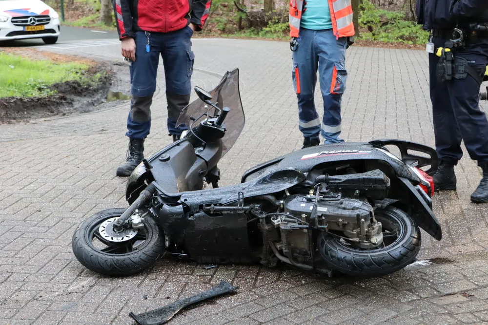 Het incident vond plaats op de kruising van de Bergstraat en de Blauwloop. De scooterrijder liep verwondingen op en werd met onbekende verwondingen naar het ziekenhuis vervoerd. De oorzaak van het ongeval is nog onbekend.