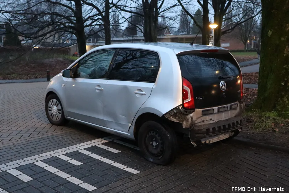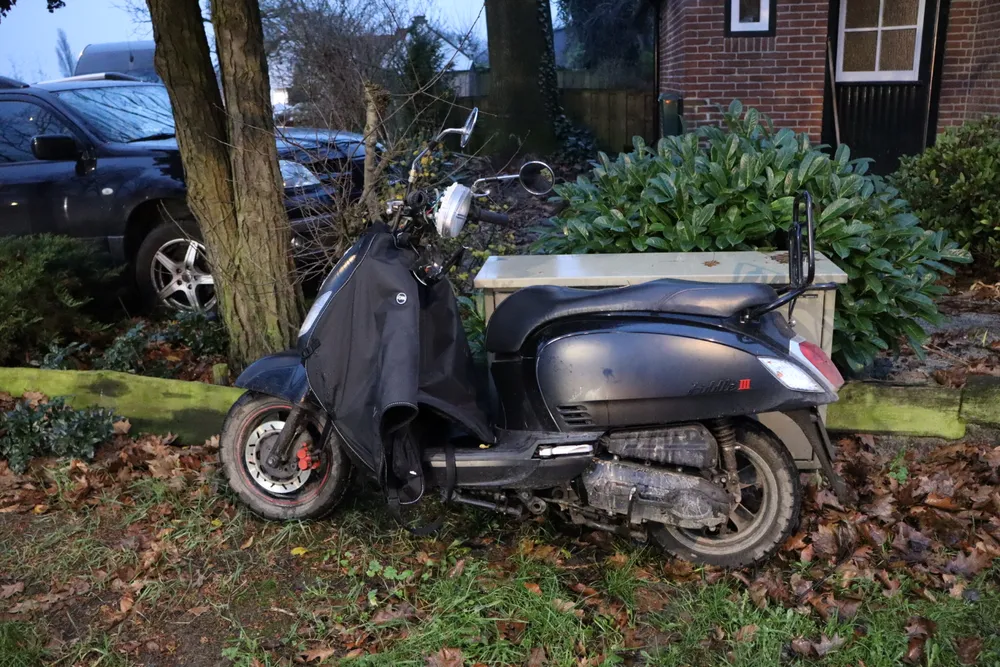 De scooterrijder kwam door onbekende oorzaak in botsing met een auto. De gewonde scooterrijder is naar het ziekenhuis gebracht. Beide voertuigen raakten beschadigd.
