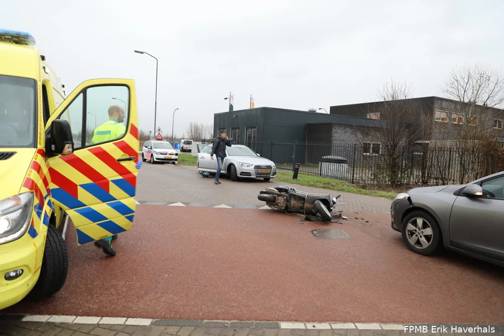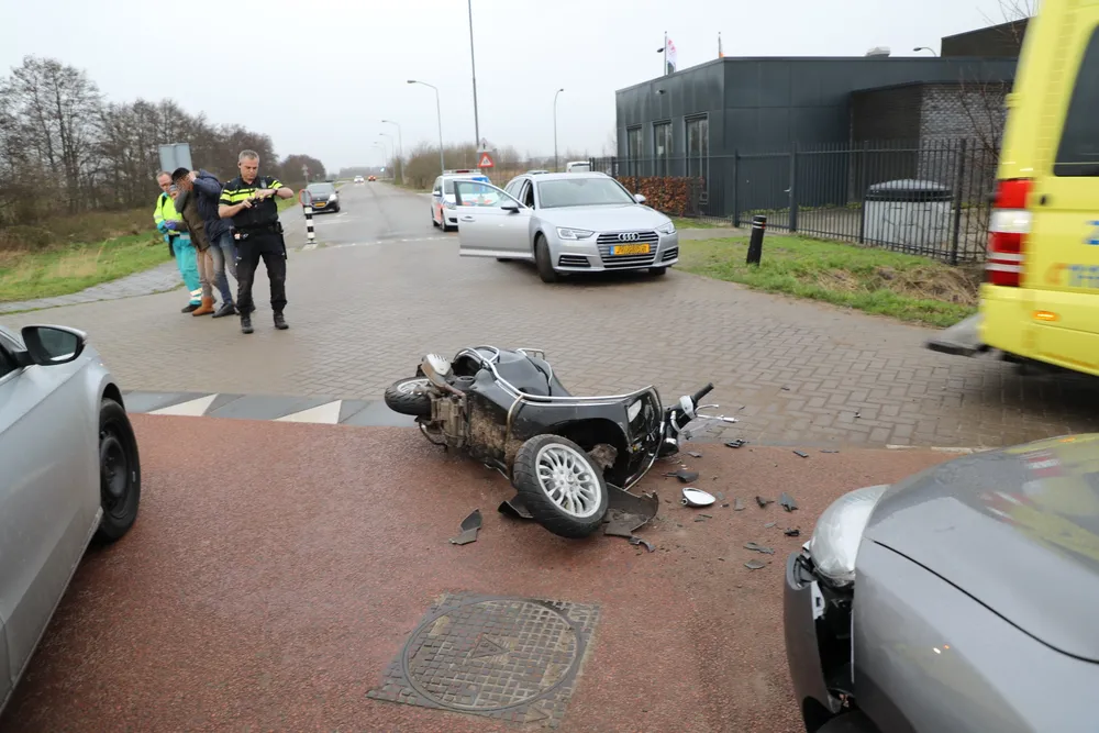 De politie heeft de aanrijding opgenomen en de scooter, die schade opliep, veilig weggezet.
