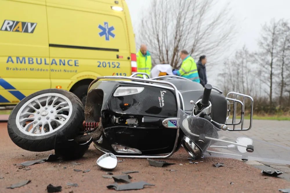Op de Burgemeester van Casterenstraat in Sprang-Capelle is maandagmiddag een scooterrijdster op het fietspad richting de Oudestraat in botsing gekomen met een auto.