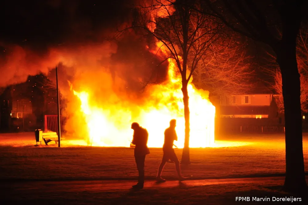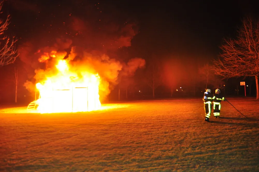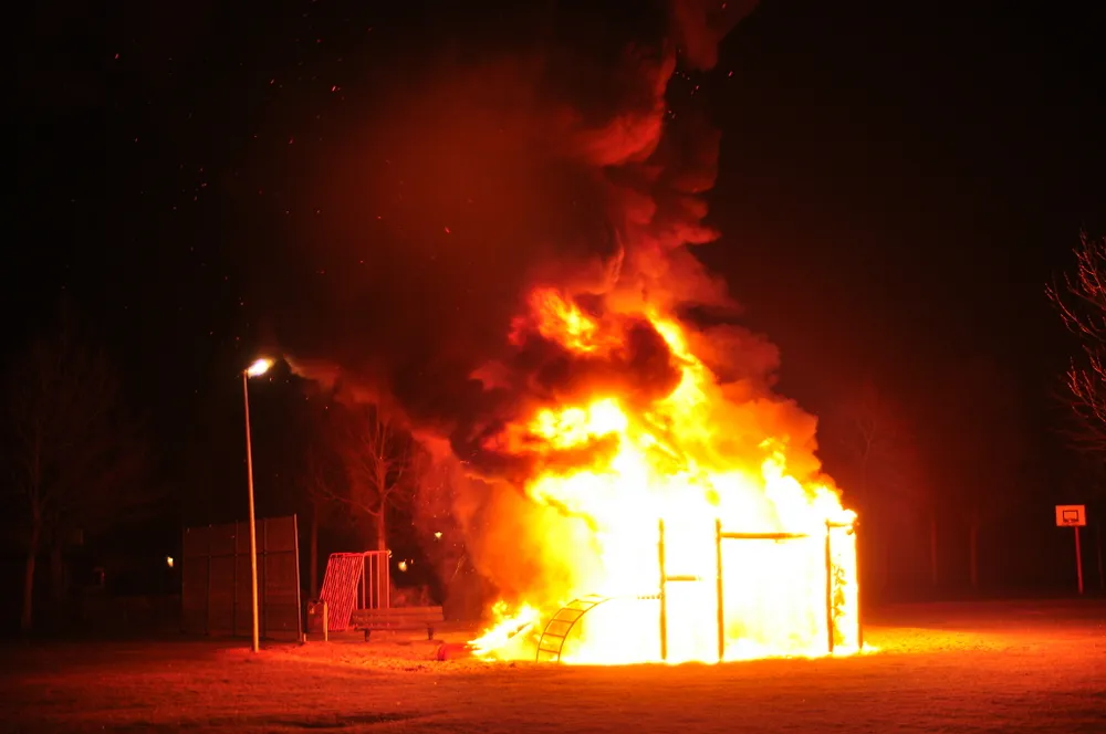 Op een grasveld aan de Frans Halslaan in Waalwijk stond vrijdagavond omstreeks 21.30 uur een compleet speeltoestel in de brand.