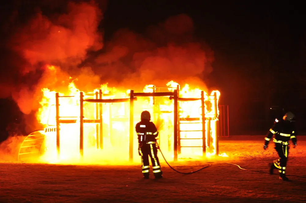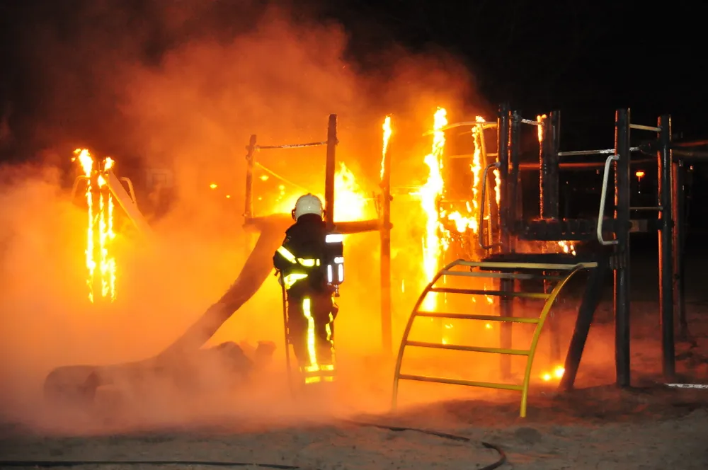 De vlammen waren meters hoog, de hitte was enorm. Veel mensen stonden op een grote afstand te kijken naar de brand. De politie heeft getuigen gesproken. Volgens getuigen liepen 3 jongens hard weg. De brandweer is een tijd bezig geweest om de brand te blussen. Tijdens de brand was er enorm veel rookontwikkeling, het speeltuin is namelijk van hard plastic.
