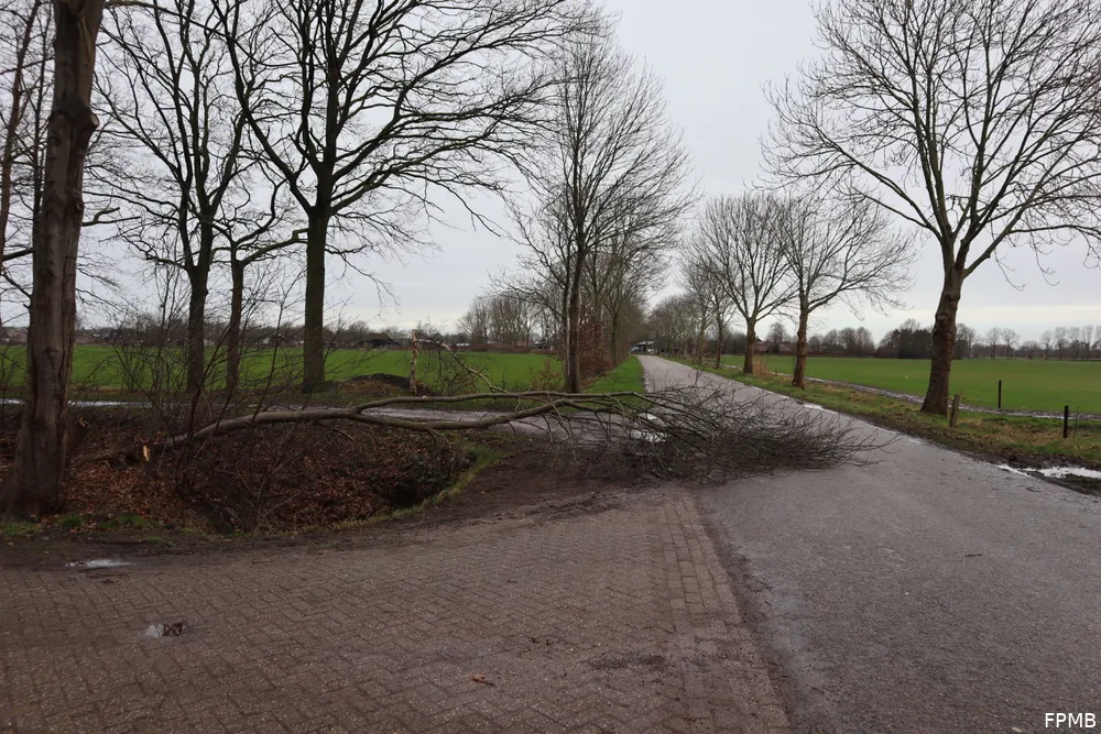 Bij een woning aan de Huygensstraat in Kaatsheuvel zijn een aantal dakpannen van het dak gewaaid. Een boom moest het ook ontgelden aan het Jan Beerenspad in Kaatsheuvel.