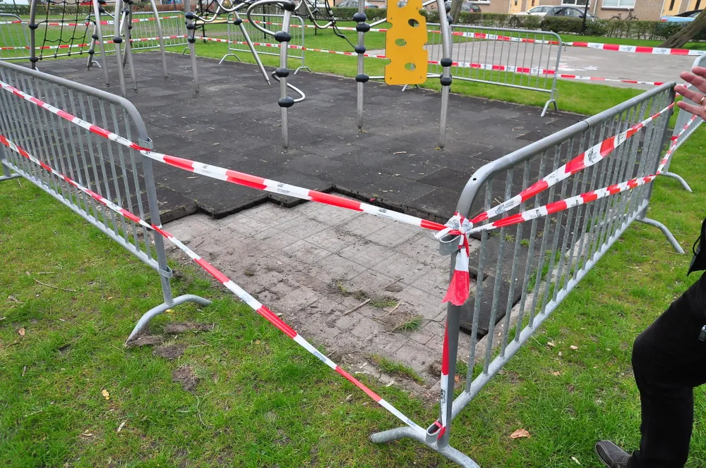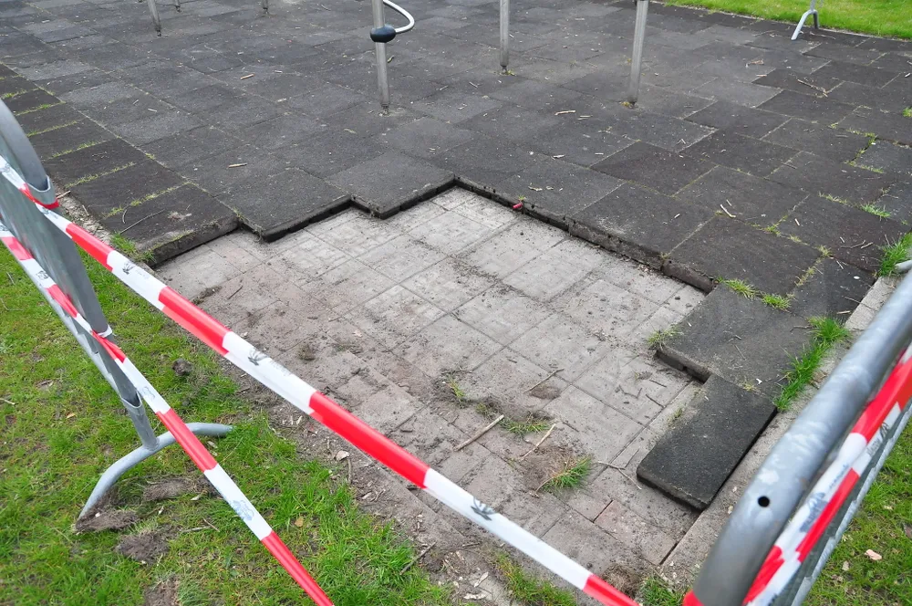 De gestolen tegels zijn 8 centimeter dik en hebben een 'valdemping' van een halve meter zand. Vorig jaar was AA Kunstgras de redder in nood. Toen het bedrijf het trieste verhaal las, kwamen ze zelf met nieuwe tegels. Of ze nu nog 12 van dit soort tegels hebben liggen, is nog niet bekend.