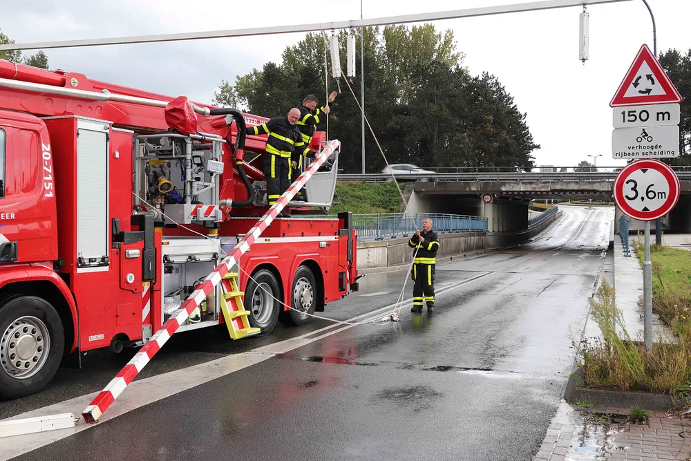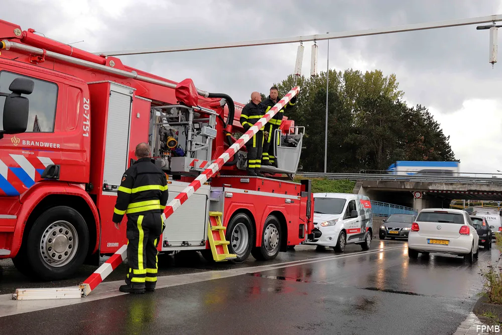 Volgens een ooggetuige is de bestuurder er meteen vandoor gegaan. De ooggetuige is erachteraan gegaan, noteerde het kenteken en waarschuwde de politie. De brandweer heeft de hoogwerker ingezet om de gebroken waarschuwingsbalk te verwijderen.