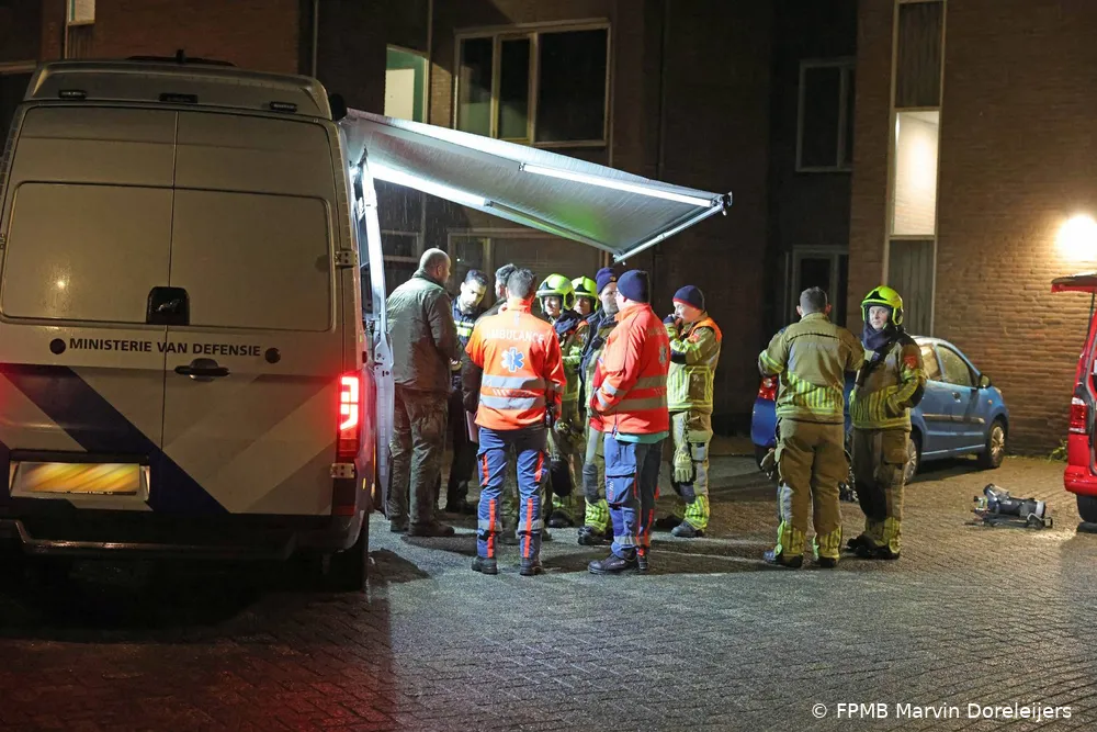WAALWIJK - In de nacht van vrijdag op zaterdag zijn twaalf woningen aan het Diederikhof in Waalwijk ontruimd na een brand in een bovenwoning. De brand ontstond rond 01.00 uur en bleek te zijn veroorzaakt doordat twee bewoners aan het experimenteren waren met een explosief mengsel. Vanwege de gevaarlijke situatie kwam ook de Explosieven Opruimingsdienst Defensie ter plaatse.