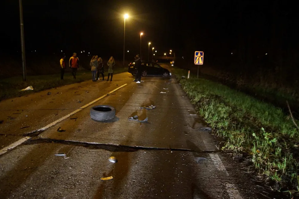 Op de weg liggen allerlei brokstukken van de auto's. De afrit naar Drunen is voor verkeer afgesloten evenals de oprit. Volgens de politie heeft de auto die van de A59 afkwam de bocht iets te ruim genomen waarna deze tegen de tegemoetkomende auto is geknald.