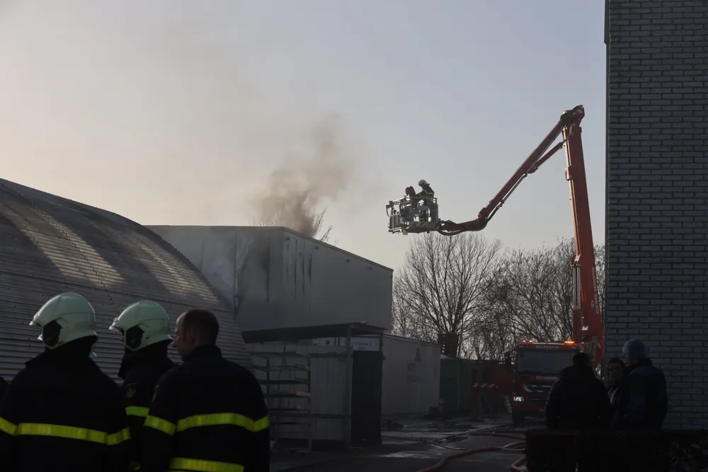 Het vuur werd rond 14.30 uur gemeld. Er is sprake van flinke rookontwikkeling. In de hal liggen bakkerij- en vriesproducten opgeslagen.