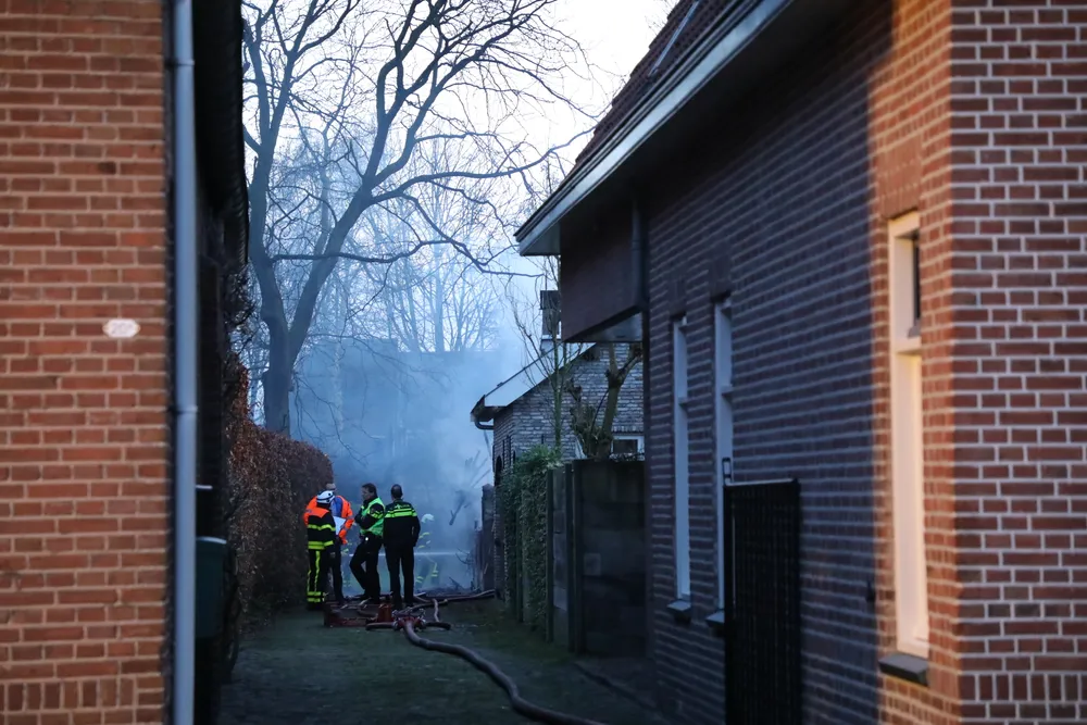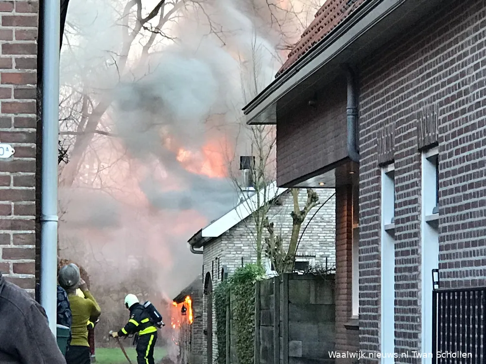 Aan het Hoogeinde in Waalwijk is donderdagmiddag brand uitgebroken in een schuur achter de woningen.