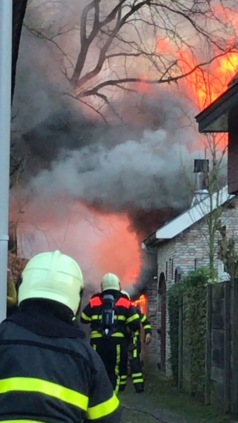Hulpdiensten rukten massaal uit; de brandweer probeerde te voorkomen dat het vuur zou overslaan naar de naastgelegen bakkerij van Hans van Beijnen. Dat lijkt niet helemaal te zijn gelukt; de Veiligheidsregio meldt dat ook daar wordt geblust en gecontroleerd.