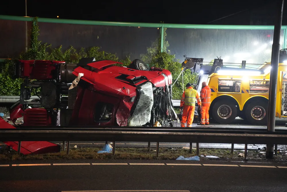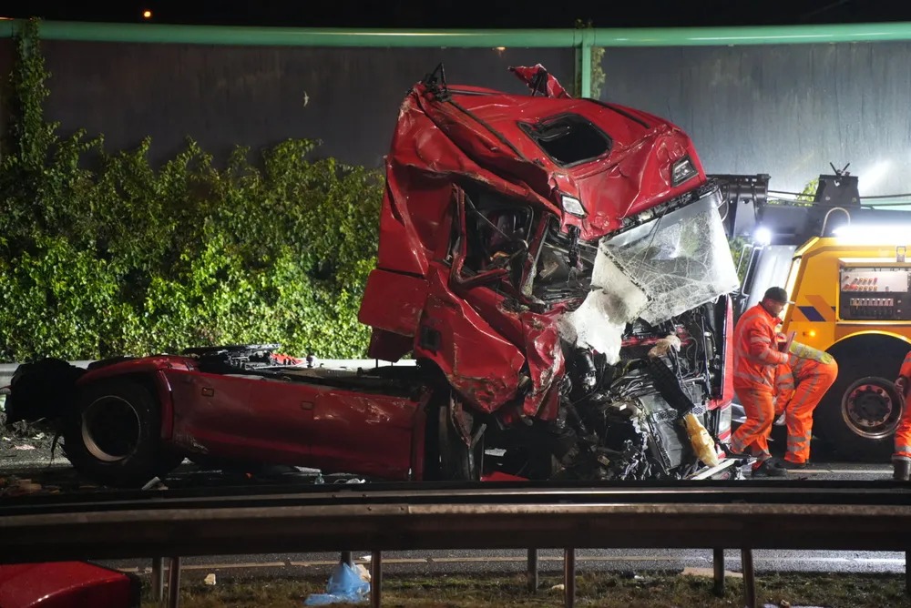 Met meer dan 200 km/u haalde de Range Rover over de vluchtstrook een vrachtwagen in en sneed vervolgens voor de vrachtwagen langs, tegen de vangrail. De vrachtwagen probeerde uit te wijken, maar kantelde. Hierdoor belandde de lading kippenpoten op het wegdek.