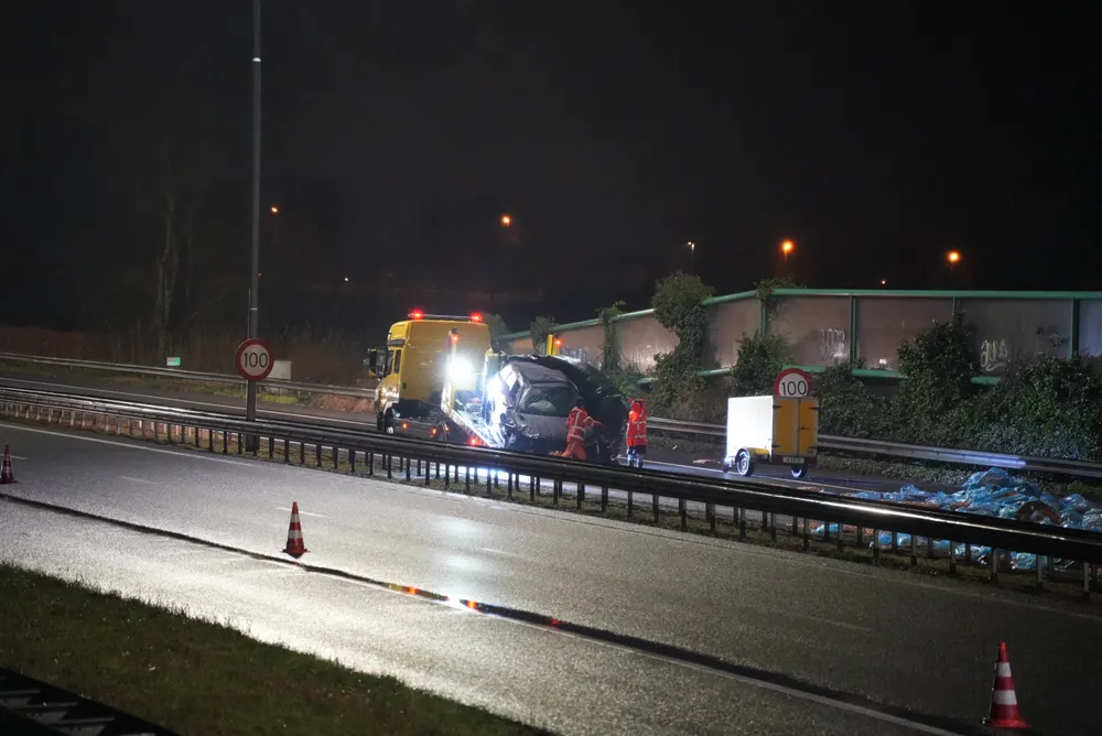 Na het rechtzetten van de Range Rover rond 01.00 uur en het bergen van de voertuigen, moest het verkeer richting Den Bosch tijdelijk over de vluchtstrook rijden.