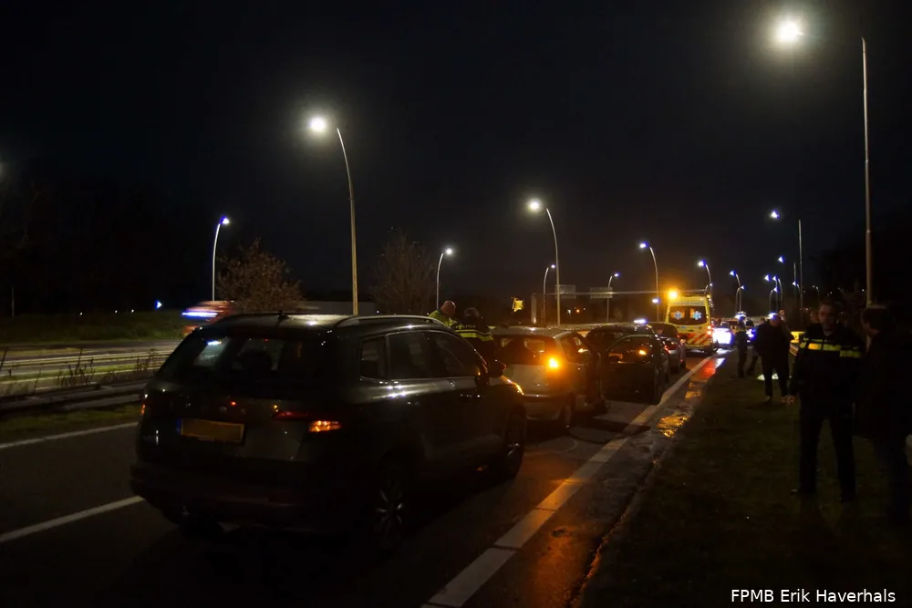 KAATSHEUVEL - Bij een botsing tussen vier auto's op de oprit van de Midden-Brabantweg bij Kaatsheuvel is donderdagavond 5 januari een persoon gewond geraakt.