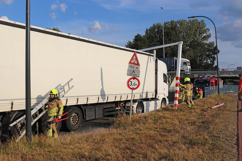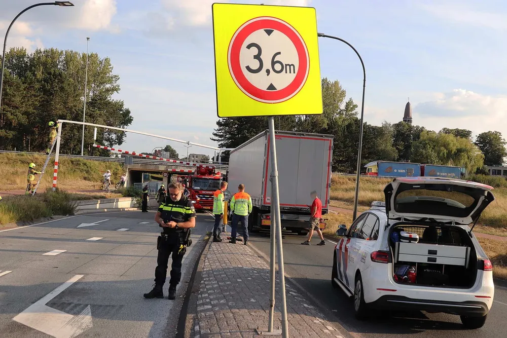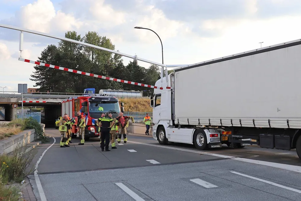 WAALWIJK - Bij het viaduct aan de Hertog Janstraat in Waalwijk is dinsdagavond, rond de klok van 19.00 uur, een vrachtwagen tegen de waarschuwingsbalken aangereden.