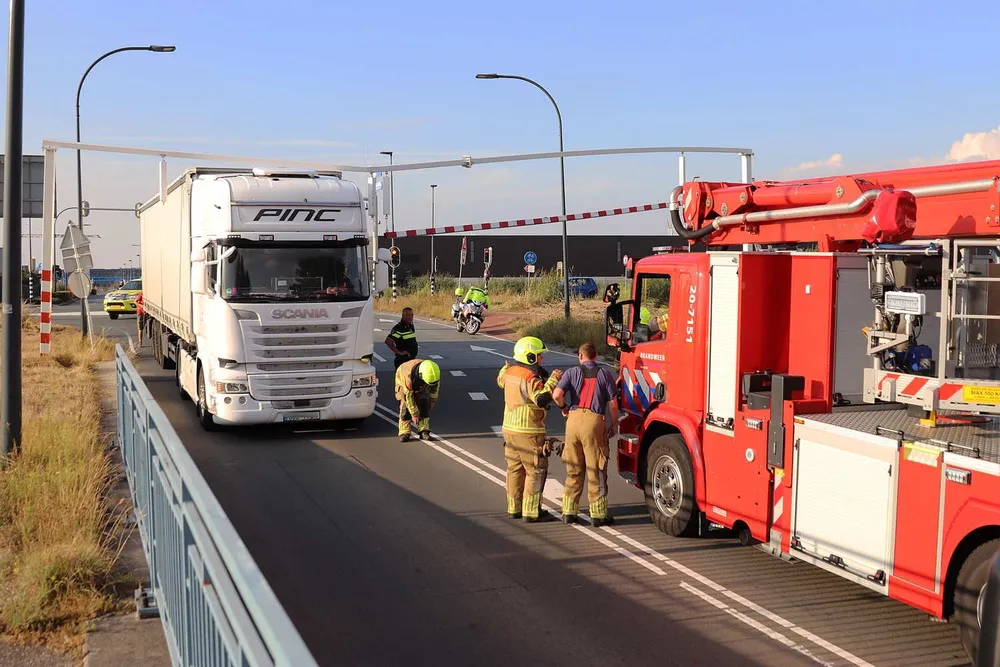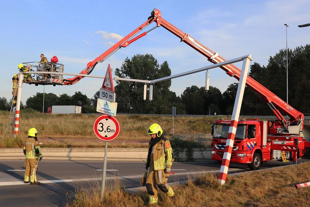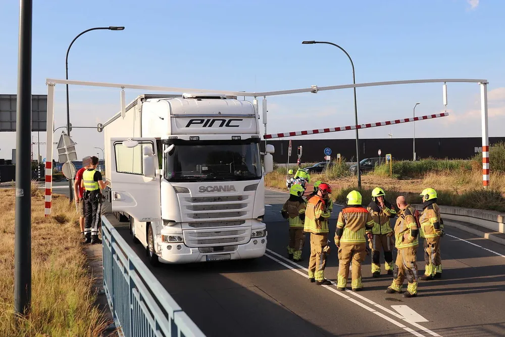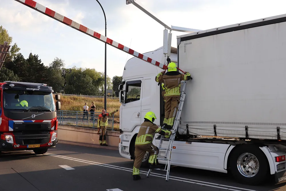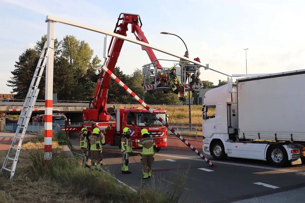 De vrachtwagenchauffeur kwam met zijn vrachtwagen klem te zitten onder de waarschuwingsbalk. Een hoogwerker van de brandweer moest eraan te pas komen om de balken te verwijderen. Hierna kon de vrachtwagenchauffeur zijn weg weer vervolgen.