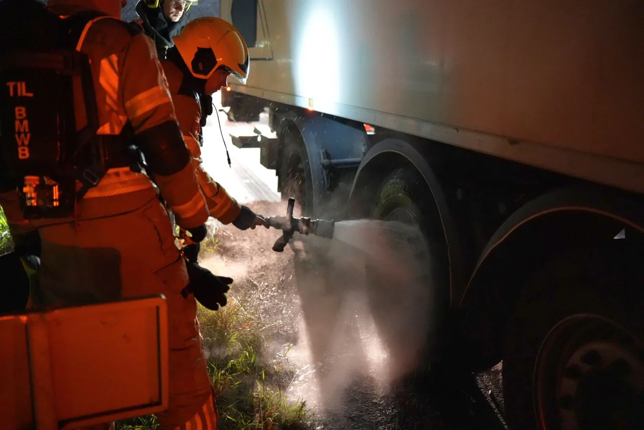 WAALWIJK – Donderdagochtend 17 oktober rond 06.00 uur kon een vrachtwagenchauffeur op tijd stoppen nadat hij rook bij de wielen van zijn trailer opmerkte.