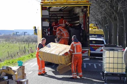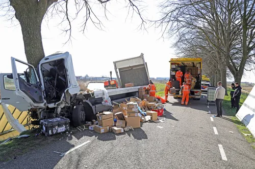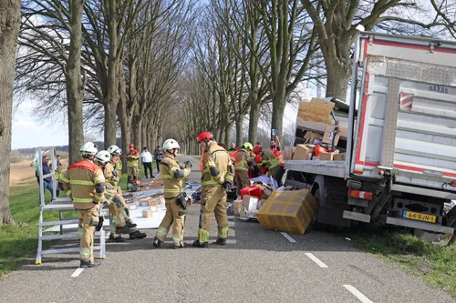 Rond 15:00 uur zijn de bergingswerkzaamheden gestart na het zware ongeval aan de Zomerdijk. De vrachtwagen, die eerder op de dag frontaal tegen een boom botste, verloor daarbij een kostbare lading. Op het wegdek lagen talloze dozen verspreid, gevuld met iPads, Apple iPhones en diverse beveiligingsapparatuur.