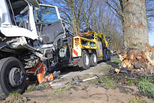 Twee ambulances, meerdere brandweervoertuigen en een traumahelikopter kwamen met spoed ter plaatse. De impact was zo hevig dat de bestuurderscabine zich om de boomstam heen krulde, waardoor de chauffeur bekneld raakte en geen kant op kon. De brandweer moest hem uit de cabine bevrijden, waarna hij met spoed naar het ziekenhuis is gebracht.
