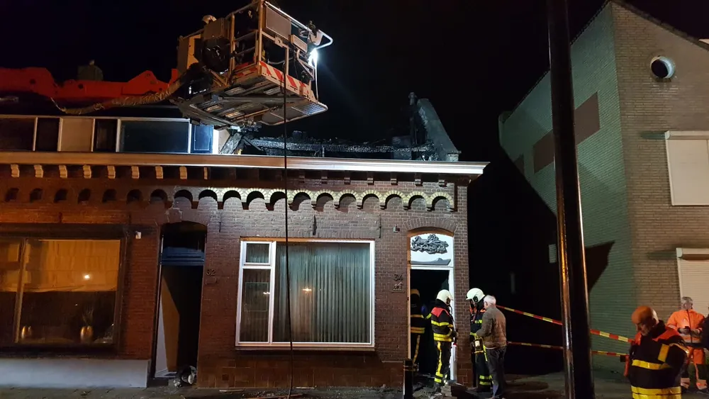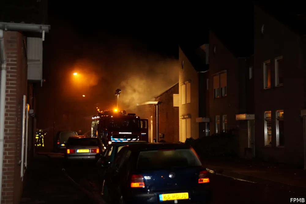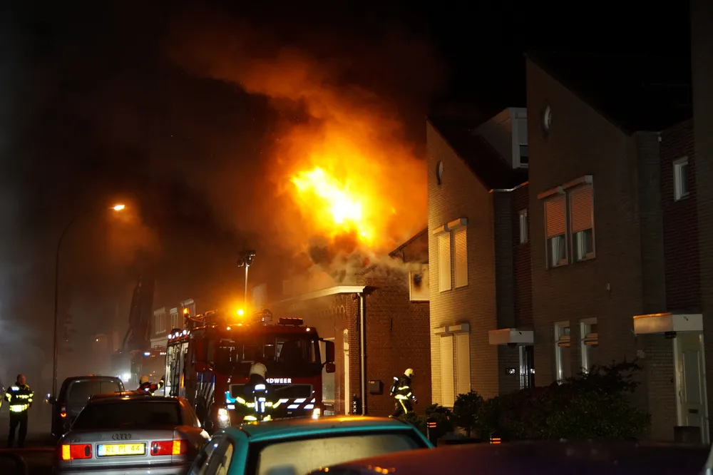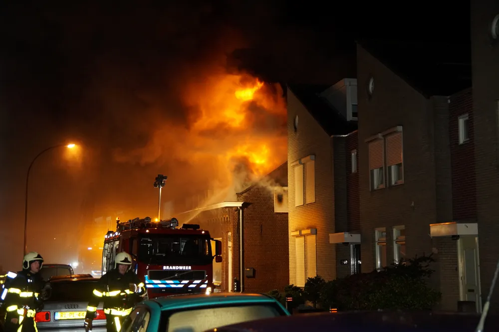 Een halfuur na de eerste melding stond het dak in brand, rond 21.20 uur meldde de brandweer dat er sprake was van een uitslaande brand. Een bewoner ademde rook in en moest door ter plaatse gekomen ambulancepersoneel worden behandeld.