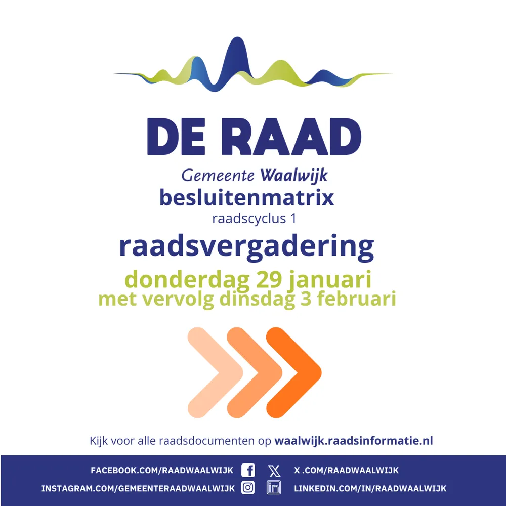 Hieronder de raadsbesluiten van donderdag 29 januari en dinsdag 3 februari 2026 (raadcyclus 1)