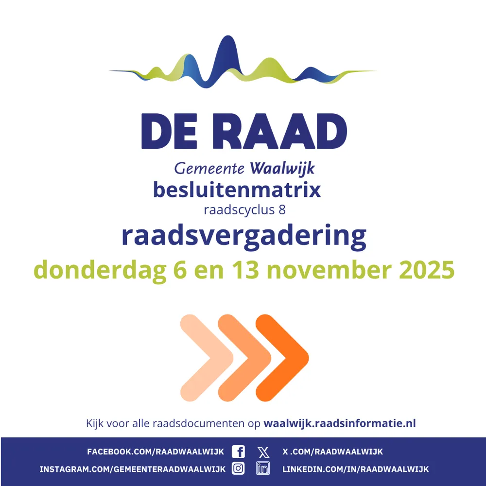 Hieronder de raadsbesluiten van donderdag 6 en 13 november 2025 (raadcyclus 8)