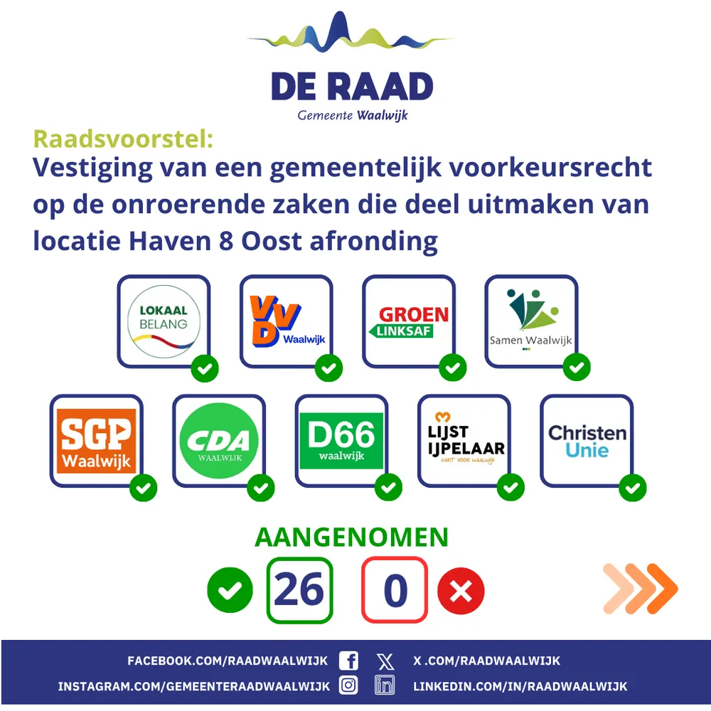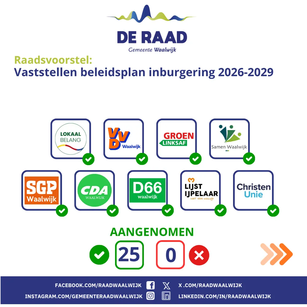 Hieronder de raadsbesluiten van donderdag 9 oktober 2025 (raadcyclus 7)