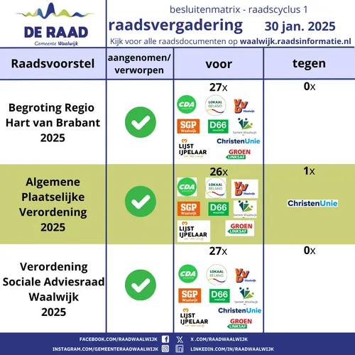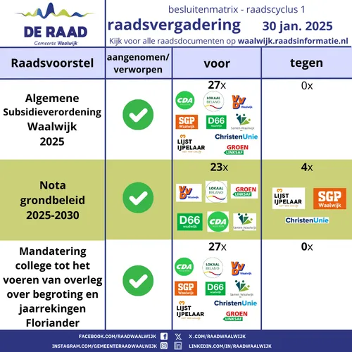 Hieronder de raadsbesluiten van 30 januari 2025 (raadcyclus 1)