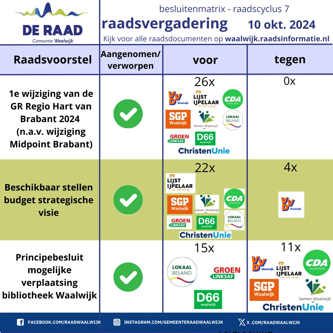 Hieronder de raadsbesluiten van 10 oktober 2024 (raadcyclus 7)