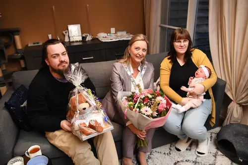 Burgemeester Sacha Ausems bracht donderdag 23 januari een kraambezoek aan het jonge gezin. Het gaat uitstekend met hen, en de komst van Lena zorgt voor veel vreugde in huis.