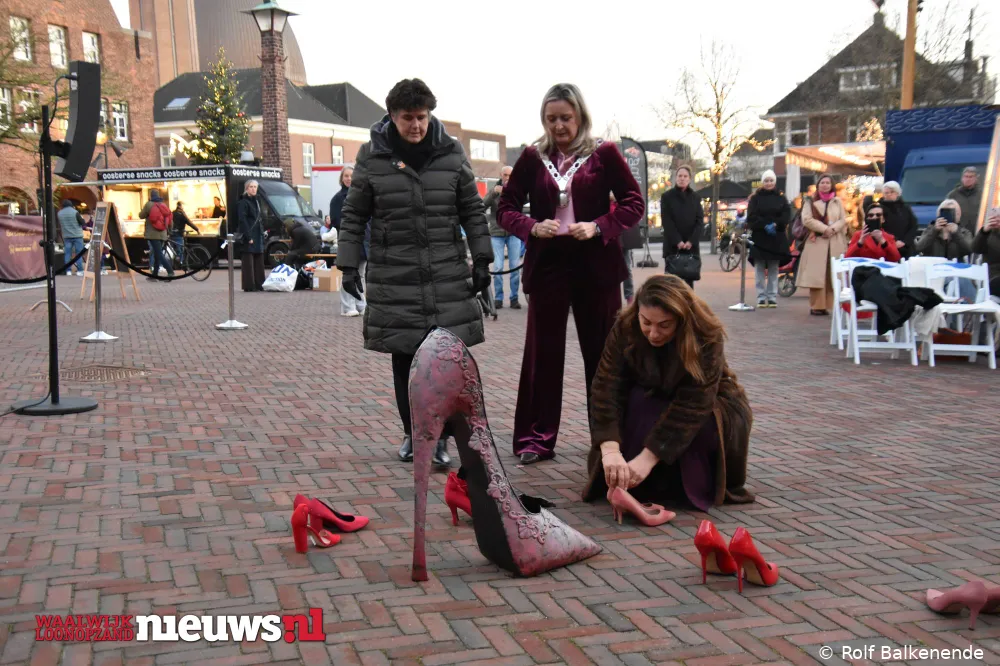 WAALWIJK – Vanmiddag opende op het Raadhuisplein de indringende expositie Rode Schoenen tegen femicide en geweld tegen vrouwen. Het initiatief is een samenwerking tussen de gemeente Waalwijk en publiciste, columniste en radiopresentatrice Yesim Candan. Met het project vraagt de organisatie aandacht voor vrouwen die slachtoffer waren van femicide of andere vormen van geweld.