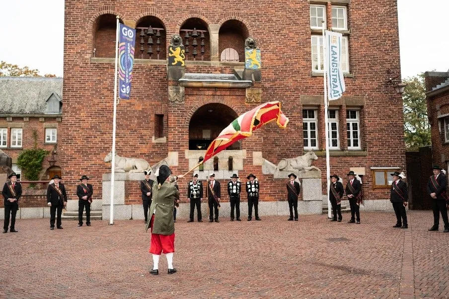 Als eerste is door de vaandrig van het gilde aan de beschermvrouwe de eed van trouw aan het wereldlijk gezag hernieuwd. Vervolgens hebben de vendeliers, ondersteund door de tamboer, de vendelgroet gebracht. Hierna is het gilde ontvangen in de oude raadszaal waar onder het genot van koffie met worstenbrood en een drankje door de hoofdman van het gilde en de beschermvrouwe in een speech werd teruggekeken op het afgelopen jaar en vooruit werd gekeken naar de toekomst van het gilde, welke met veel vertrouwen tegemoet wordt gezien. Na de bijeenkomst in de oude raadszaal is het gilde naar het paviljoen op het schietterrein gegaan. Hier stond inmiddels een lunch klaar om de inwendige gildebroeders te versterken.