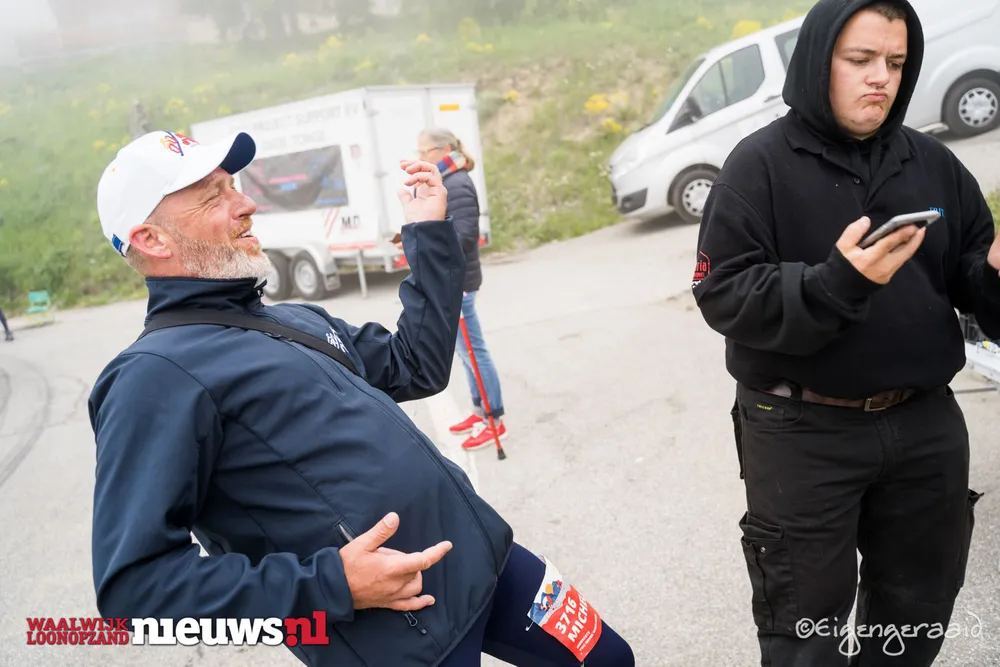 Het is zwaar, stijl, ver en deze ochtend koud. Langzaam aan begon de lucht dicht te trekken en zag je nog maar een paar meter voor je. Met personenvervoer worden we naar boven gebracht. Yswald en ik stappen uit tussen bocht 3 en 2. Moeders Sjanny en Diana laten zich naar de finish vervoeren. Yswald en ik moeten de mist in, de berg op naar bocht 2. Ik had al respect voor de lopers, maar dat respect was alleen maar gegroeid toen we bij bocht 2 aan kwamen.