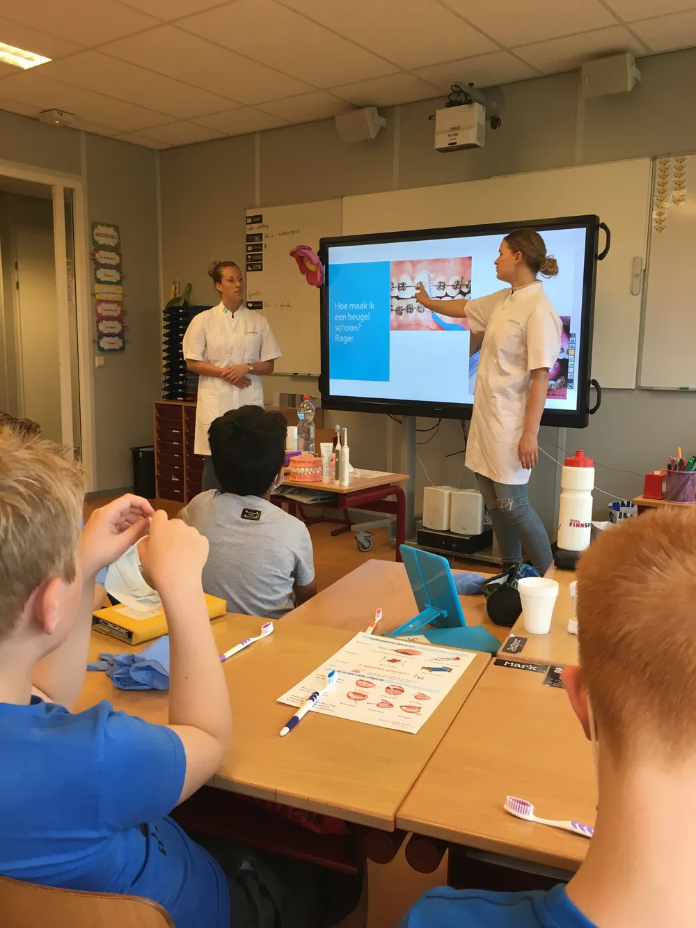 Waalwijk - Hou je mond gezond. Twee studenten Mondzorgkunde van de Han Nijmegen gaven vandaag op de Koningsschool een boeiende les over mondverzorging aan de kinderen van groep 6.